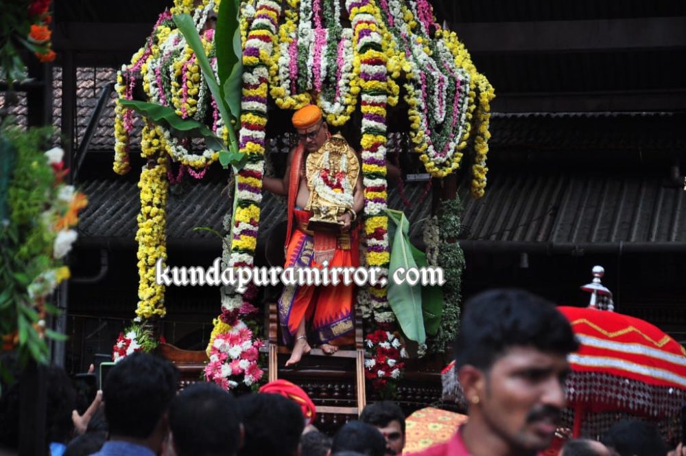 ನವರಾತ್ರಿ ಪ್ರಾರಂಭವಾದ ದಿನದಿಂದ ಮಹಾನವಮಿಯ ತನಕವೂ ದೇವಸ್ಥಾನದಲ್ಲಿ ವಿವಿಧ ಪೂಜೆ ಹಾಗೂ ಧಾರ್ಮಿಕ ಆಚರಣೆಯನ್ನು ಮಾಡಲಾಗಿತ್ತು. ಮಂಗಳವಾರ ಮಧ್ಯಾಹ್ನ ದೇಗುಲದಿಂದ ಹೊರಕ್ಕೆ ತರಲಾದ ಶ್ರೀ ದೇವಿಯ ಉತ್ಸವ ಮೂರ್ತಿಯ ಪ್ರದಕ್ಷಿಣೆ ಹಾಗೂ ಬಲಿ ಸೇವೆ ನಡೆದ ಬಳಿಕ ಶ್ರೀ ದೇವಿಯನ್ನು ಅಲಂಕರಿಸಿದ ಪುಷ್ಪ ರಥದಲ್ಲಿ ಕುಳ್ಳಿರಿಸಲಾಯಿತು.