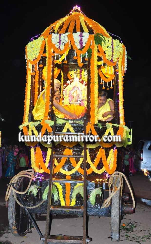 ಸಂಜೆ ದೇವಸ್ಥಾನದಲ್ಲಿ ಪುಷ್ಪರಥೋತ್ಸವ ಕಾರ್ಯಕ್ರಮ ನಡೆಯಿತು. ಸೌಕೂರು ದೇವಳದ ರಥಬೀದಿಯಲ್ಲಿ ಪುಷ್ಪರಥದಲ್ಲಿ ದೇವಿಯನ್ನು ಕುಳ್ಳಿರಿಸಿ ಭಕ್ತಾಭಿಮಾನಗಳು ಮೆರವಣಿಗೆ ನಡೆಸಿದರು. ಪ್ರಧಾನ ಅರ್ಚಕ ಅನಂತ ಅಡಿಗರು ದೇವರ ಕಾರ್ಯಗಳನ್ನು ಯಶಸ್ವಿಯಾಗಿ ನೆರವೇರಿಸಿದರು. ದೇವಸ್ಥಾನದ ವ್ಯವಸ್ಥಾಪನಾ ಸಮಿತಿಯ ಅಧ್ಯಕ್ಷ ಅಧ್ಯಕ್ಷ ಮಂಜಯ್ಯ ಶೆಟ್ಟಿ ಹಾಗೂ ವ್ಯವಸ್ಥಾಪನ ಸಮಿತಿಯ ಸದಸ್ಯರು ನೇತೃತ್ವ ವಹಿಸಿದ್ದರು. ಸಾವಿರಾರು ಭಕ್ತಾಧಿಗಳು ದೇವಿಯ ದರ್ಶನ ಪಡೆದು ಪುನೀತರಾದರು.