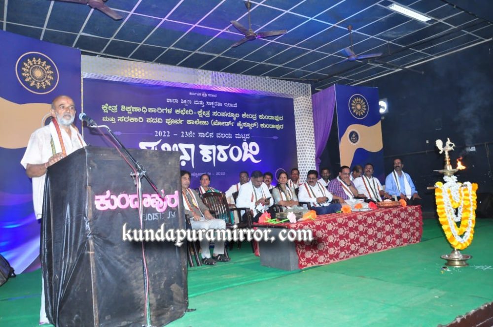 ಅವರು ಕುಂದಾಪುರದ ಲಕ್ಷ್ಮೀನರಸಿಂಹ ಕಲಾ ಮಂದಿರದಲ್ಲಿ ಶಾಲಾ ಶಿಕ್ಷಣ ಮತ್ತು ಸಾಕ್ಷರತಾ ಇಲಾಖೆ, ಕ್ಷೇತ್ರ ಶಿಕ್ಷಣಾಧಿಕಾರಿಗಳ ಕಛೇರಿ-ಕ್ಷೇತ್ರ ಸಂಪನ್ಮೂಲ ಕೇಂದ್ರ ಕುಂದಾಪುರ ಮತ್ತು ಸರಕಾರಿ ಪದವಿಪೂರ್ವ ಕಾಲೇಜು (ಬೋರ್ಡ್ ಹೈಸ್ಕೂಲ್) ಕುಂದಾಪುರ ಇವರ ಆಶ್ರಯದಲ್ಲಿ ಅ.31ರಂದು ನಡೆದ 2022-23ನೇ ಸಾಲಿನ ವಲಯ ಮಟ್ಟದ ಪ್ರತಿಭಾ ಕಾರಂಜಿ ಕಾರ್ಯಕ್ರ ಉದ್ಘಾಟಿಸಿ ಮಾತನಾಡಿದರು.