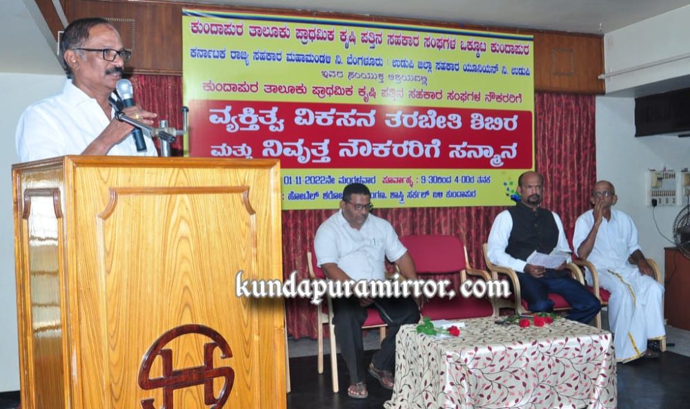 ಉಡುಪಿ ಜಿಲ್ಲಾ ಸಹಕಾರಿ ಯೂನಿಯನ್ ನಿರ್ದೇಶಕರು, ಕುಂದಾಪುರ ವ್ಯವಸಾಯ ಸೇವಾ ಸಹಕಾರಿ ಸಂಘದ ಅಧ್ಯಕ್ಷರಾದ ಕೃಷ್ಣಮೂರ್ತಿ ಅಧ್ಯಕ್ಷತೆ ವಹಿಸಿ, ಸಹಕಾರ ಸಂಘಗಳ ನೌಕರರಿಗೆ ಕಾಲಕಾಲಕ್ಕೆ ಸೂಕ್ತ ತರಬೇತಿಯ ಅವಶ್ಯಕತೆ ಇರುತ್ತದೆ. ವ್ಯಕ್ತಿತ್ವ ವಿಕಸನ ತರಬೇತಿ ವ್ಯವಹಾರದಲ್ಲಿ ಅನುಕೂಲವಾಗುತ್ತದೆ. ಸಹಕಾರಿ ನೌಕರರನ್ನು ಗುರುತಿಸುವ ಕಾರ್ಯವೂ ಶ್ಲಾಘನೀಯ ಎಂದರು.