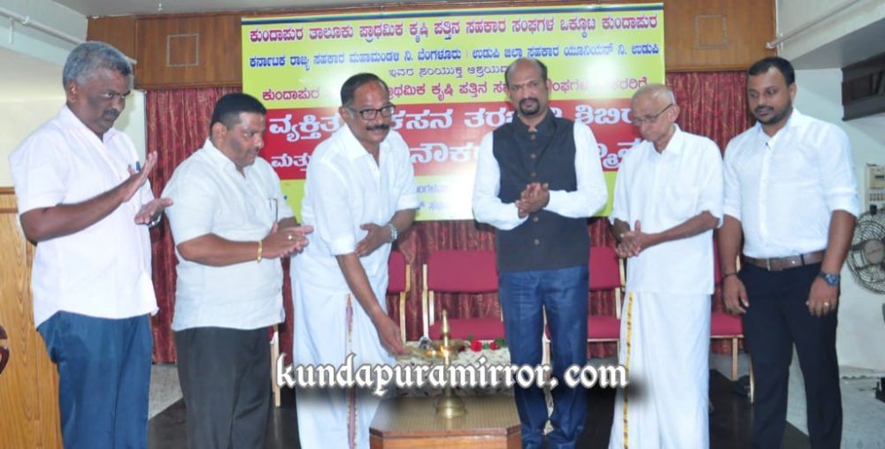 ಕುಂದಾಪುರ: ಕುಂದಾಪುರ ತಾಲೂಕು ಪ್ರಾಥಮಿಕ ಕೃಷಿ ಪತ್ತಿನ ಸಹಕಾರ ಸಂಘಗಳ ಒಕ್ಕೂಟ ಕುಂದಾಪುರ, ಕರ್ನಾಟಕ ರಾಜ್ಯ ಸಹಕಾರ ಮಹಾಮಂಡಳ ನಿ., ಬೆಂಗಳೂರು, ಉಡುಪಿ ಜಿಲ್ಲಾ ಸಹಕಾರ ಯೂನಿಯನ್ ನಿ., ಉಡುಪಿ ಇವರ ಸಂಯುಕ್ತ ಆಶ್ರಯದಲ್ಲಿ ಕುಂದಾಪುರ ತಾಲೂಕು ಪ್ರಾಥಮಿಕ ಕೃಷಿ ಪತ್ತಿನ ಸಹಕಾರ ಸಂಘಗಳ ನೌಕರರಿಗೆ ವ್ಯಕ್ತಿತ್ವ ವಿಕಸನ ತರಬೇತಿ ಶಿಬಿರ ಕುಂದಾಪುರದ ಹೋಟೆಲ್ ಶರೋನ್ ಸಭಾಂಗಣದಲ್ಲಿ ನಡೆಯಿತು.