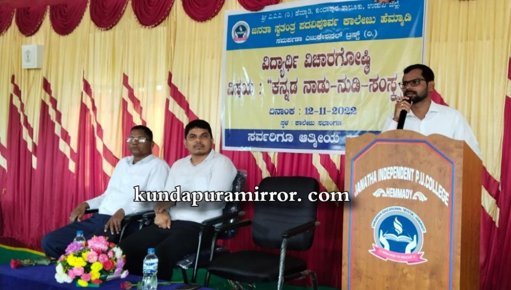 ಹೆಮ್ಮಾಡಿ: ಜನತಾ ಸ್ವತಂತ್ರ ಪದವಿಪೂರ್ವ ಕಾಲೇಜು ಹೆಮ್ಮಾಡಿಯಲ್ಲಿ “ಕನ್ನಡ ನಾಡು-ನುಡಿ-ಸಂಸ್ಕೃತಿ” ವಿಷಯದ ಕುರಿತು ವಿದ್ಯಾರ್ಥಿ ವಿಚಾರಗೋಷ್ಠಿ ನಡೆಯಿತು.