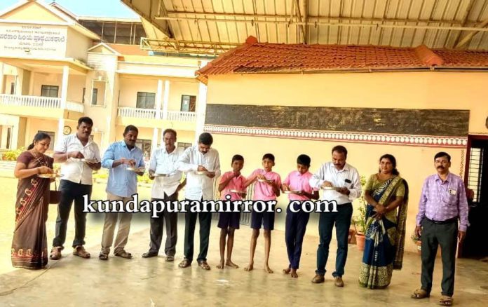 ಕೋಟ: ಕೋಟ ಗ್ರಾಮ ಪಂಚಾಯತ್ ಅಧ್ಯಕ್ಷ ಅಜಿತ್ ದೇವಾಡಿಗ ನೇತ್ರತ್ವದಲ್ಲಿ ಸರಕಾರಿ ಹಿರಿಯ ಪ್ರಾಥಮಿಕ ಶಾಲೆ ಮಣೂರು ಗೆ ಭೇಟಿ ನೀಡಿ ಮಧ್ಯಾಹ್ನ ಬಿಸಿಯೂಟ ತಯಾರಿಸಿರುವುದನ್ನು ಸ್ವತಃ ಊಟವನ್ನು ಮಾಡುವುದರೊಂದಿಗೆ ಗುಣಮಟ್ಟವನ್ನು ಪರಿಶೀಲಿಸಿದರು. ಶಾಲೆಗೆ ಬೇಕಾಗಿರುವ ಇಂಗುಗುಂಡಿ ಹಾಗೂ ದಾಸ್ತಾನು ಕೊಠಡಿ ಬೇಡಿಕೆ ಇರುವುದನ್ನು ಶಾಲಾ ಮುಖ್ಯೋಪಾಧ್ಯಾಯರೊಂದಿಗೆ ಚರ್ಚಿಸಿ ಎನ್ಆರ್ಇಜಿಎ ಕ್ರಿಯಾಯೋಜನೆಯಲ್ಲಿ ಅಳವಡಿಸಿ ಮಾಡಿಕೊಡಲಾಗುವುದೆಂದು ತಿಳಿಸಲಾಯಿತು. ಉಪಾಧ್ಯಕ್ಷೆ ಜಯಂತಿ ಪೂಜಾರಿ,ಅಭಿವೃದ್ಧಿ ಅಧಿಕಾರಿ ಸುರೇಶ್ ಬಂಗೇರ, ಸ್ಥಳೀಯ ಪಂಚಾಯತ್ ಸದಸ್ಯರು, ಎಸ್.ಡಿ.ಎಂ.ಸಿ ಅಧ್ಯಕ್ಷರು ಮತ್ತಿತರರು ಉಪಸ್ಥಿತರಿದ್ದರು.