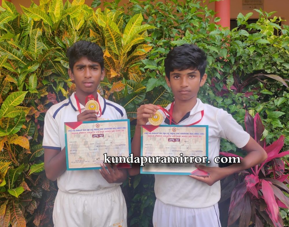 ಕುಂದಾಪುರ :ಸರಕಾರಿ ಪದವಿ ಪೂರ್ವ ಕಾಲೇಜು ಕುಂದಾಪುರ ಇಲ್ಲಿನ ಪ್ರೌಢಶಾಲಾ ವಿಭಾಗದ(ಬೋರ್ಡ್ ಹೈ ಸ್ಕೂಲ್) ತೇಜಸ್ ಆರ್ ನಾಯ್ಕ ಮತ್ತು ಅನಿಕೇತ್ ಇವರು ಹಾಸನ ಜಿಲ್ಲೆಯ ಶಾಲಾ ಶಿಕ್ಷಣ ಮತ್ತು ಸಾಕ್ಷರತಾ ಇಲಾಖೆಯ ಆಶ್ರಯದಲ್ಲಿ ನಡೆದ ಮೈಸೂರು ವಿಭಾಗ ಮಟ್ಟದ ಕ್ರಿಕೆಟ್ ಪಂದ್ಯಾಟದಲ್ಲಿ ಉಡುಪಿ ಜಿಲ್ಲಾ ತಂಡವನ್ನು ಪ್ರತಿನಿಧಿಸಿ ಪ್ರಥಮ ಸ್ಥಾನ ಪಡೆದು ಬೆಂಗಳೂರಿನಲ್ಲಿ ನಡೆಯುವ ರಾಜ್ಯ ಮಟ್ಟದ ಕ್ರಿಕೆಟ್ ಪಂದ್ಯಾಟಕ್ಕೆ ಆಯ್ಕೆಯಾಗಿರುತ್ತಾರೆ.
