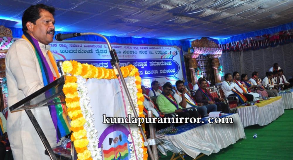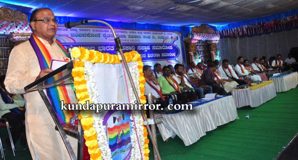 ಕುಂದಾಪುರ: ಕರ್ನಾಟಕ ರಾಜ್ಯ ಸಹಕಾರ ಮಹಾಮಂಡಳ ನಿ. ಬೆಂಗಳೂರು, ಉಡುಪಿ ಜಿಲ್ಲಾ ಯೂನಿಯನ್ ಹಾಗೂ ಖಂಬದಕೋಣೆ ರೈತರ ಸೇವಾ ಸಹಕಾರಿ ಸಂಘ ನಿ.ಉಪ್ಪುಂದ ಇದರ ಸಂಯುಕ್ತಾಶ್ರದಲ್ಲಿ 69ನೇ ಅಖಿಲ ಭಾರತ ಸಹಕಾರಿ ಸಪ್ತಾಹ ಸಮಾರೋಪ ಹಾಗೂ ಪ್ರತಿಭಾ ಪುರಸ್ಕಾರ, ಸಮ್ಮಾನ, ಗೌರವ ಧನ ವಿತರಣಾ ಸಮಾರಂಭ ಖಂಬದಕೋಣೆ ಕರ್ನಾಟಕ ಖಾರ್ವಿ ಯಾನೆ ಹರಿಕಾಂತ ಮಹಾಜನ ಸಭಾಂಗಣದಲ್ಲಿ ನ.20ರಂದು ನಡೆಯಿತು.