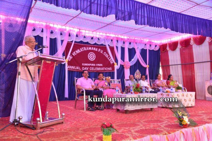 ಅವರು ಕುಂದಾಪುರದ ಶ್ರೀ ವೆಂಕಟರಮಣ ಪದವಿ ಪೂರ್ವ ಕಾಲೇಜಿನಲ್ಲಿ ಬಹುಮಾನ ವಿತರಣಾ ಸಮಾರಂಭದಲ್ಲಿ ಭಾಗವಹಿಸಿ ಮಾತನಾಡಿದರು.
