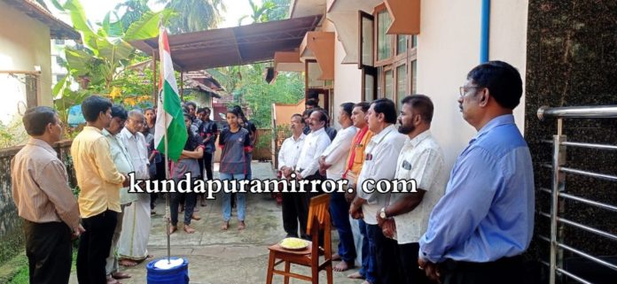 ರಾಷ್ಟ್ರ ಧ್ವಜಕ್ಕೆ ಪುಷ್ಪಾರ್ಚನೆಯ ಮೂಲಕ ಸೀತಾರಾಮ ಕೆ. ದೇವಾಡಿಗ ಚಾಲನೆ ನೀಡಿದರು.